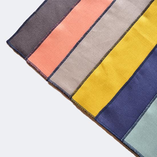 表面と裏面の区分がないデザインで、ファスナーを使用していないため、暮らしの様々な場面で気軽にご使用頂けます。『14-23 Re.nen』と同様に、フォーマルにもカジュアルにも良く馴染むネイビー色で丁寧にオーバーロックを掛けて、全色共通で仕上げました。