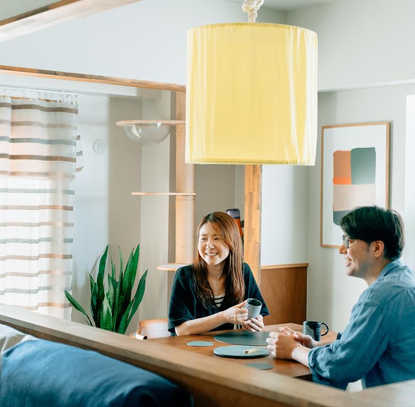 落ち着いた質感とアクセントカラーの組合せることで生まれる心地良さを目指しました。